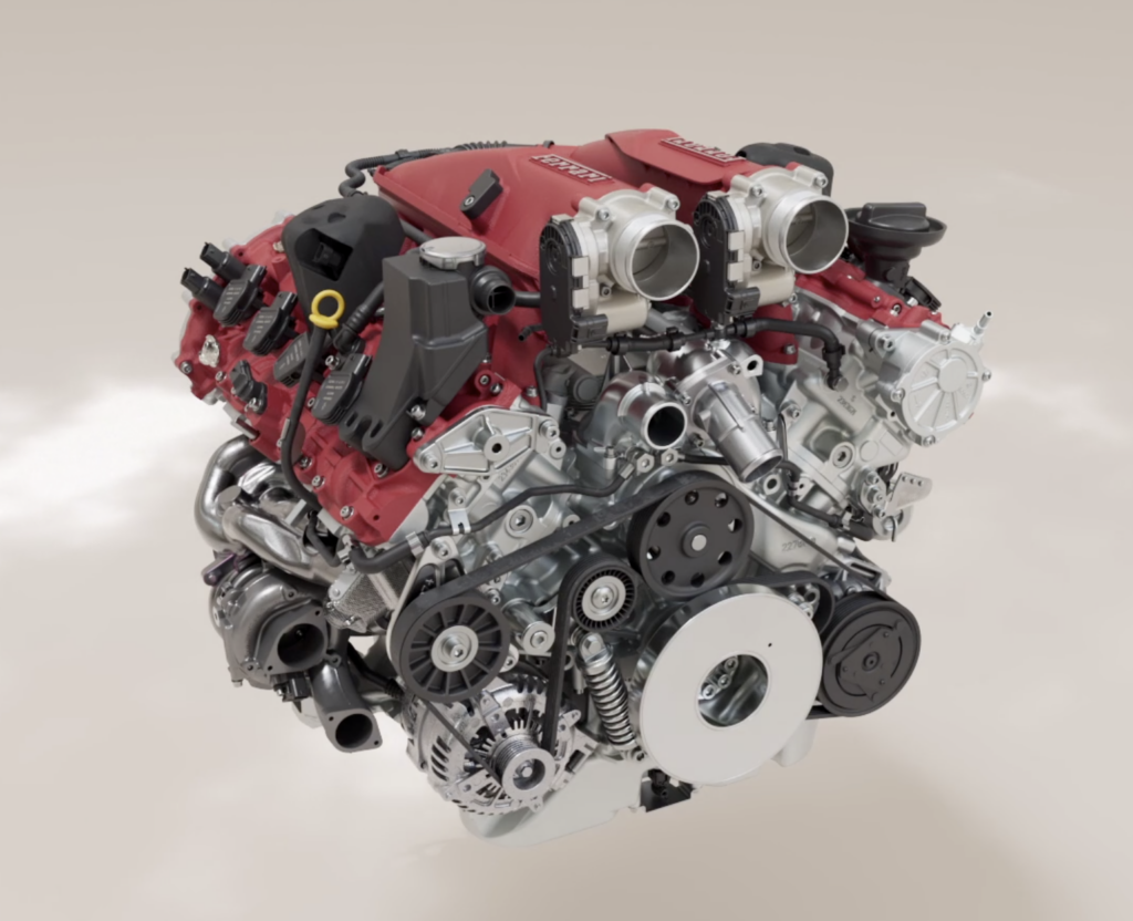 Le moteur de la Ferrari Amalfi Spider, tout comme celui de la Ferrari Amalfi, représente la dernière évolution du V8 biturbo de 3 855 cm³ de la famille F154 – le modèle le plus primé à l’international dans l’histoire automobile récente. Dans cette configuration, le moteur a été optimisé pour délivrer une puissance maximale de 640 ch à 7 500 tr/min, avec une puissance spécifique de 166 ch/l et un régime maximal porté à 7 600 tr/min, exploitant ainsi pleinement sa courbe de puissance progressive.